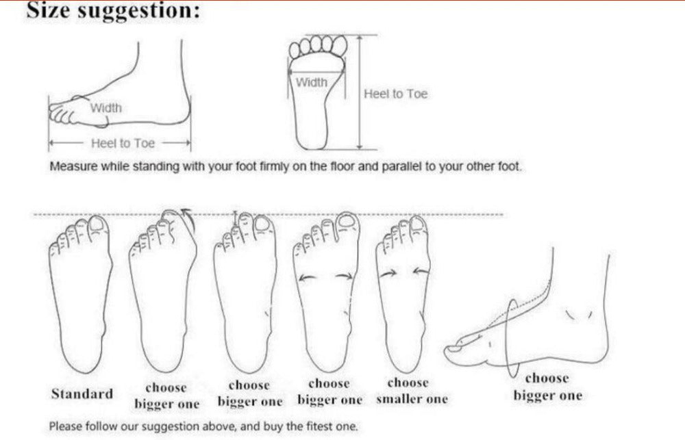 2.We usually choose the size according to the foot length.All the size is just for your reference,0.5-1cm error will be accepted