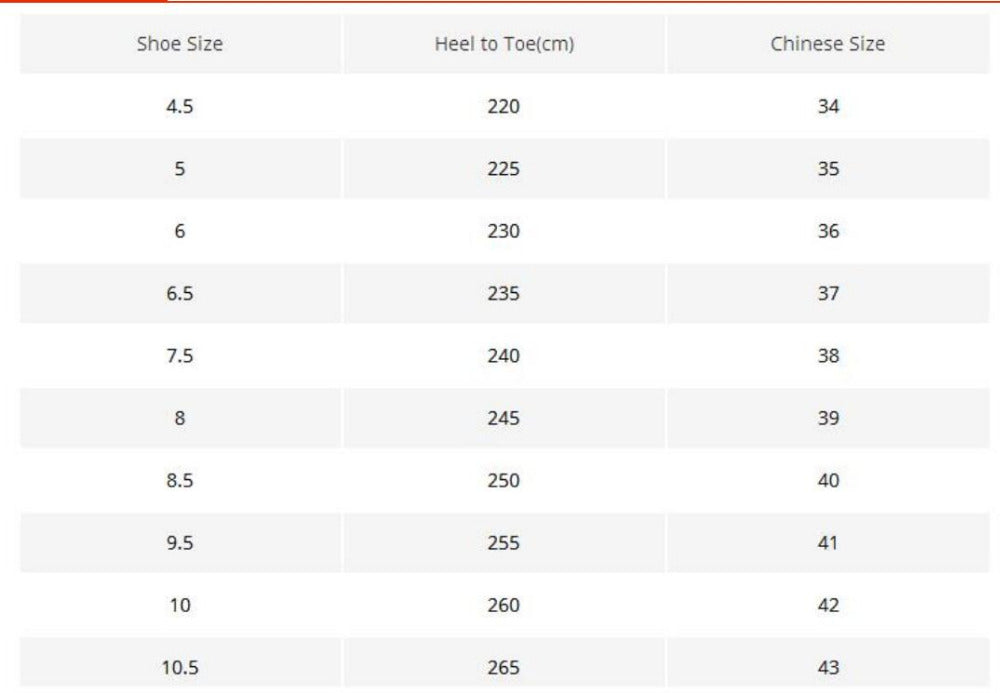 To avoid tolerance of measurement, please measure your foot and choose the right size refer to the foot length.All of our shoes are made in China, so the size on the soles is China size . If you have any question,please contact us freely!
